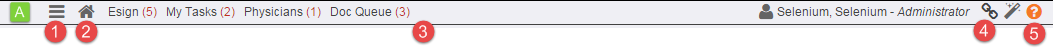 Layered toolbars appear throughout the MIE system at the top of the page to provide navigation, patient details, and encounter details. The number of toolbars change depending on the page. Additionally, the toolbars collapse as you navigate some pages to maximize space for data entry.